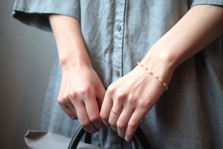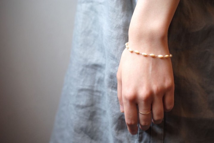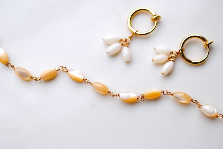 マザーオブパール(真珠を作り出す貝)のブレスレットも。