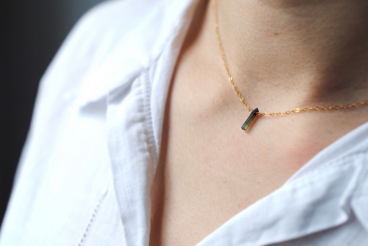 細長いラフなカットのトルマリンネックレス。