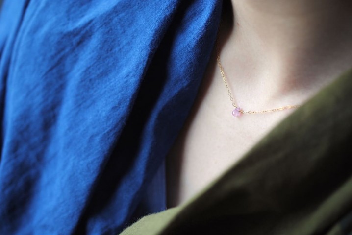 くすみのある色味が肌に馴染む、ピンクサファイアネックレス。