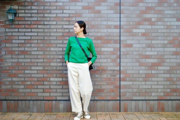 新色のリーフグリーン。シンプルな装いに馴染むいい緑です。