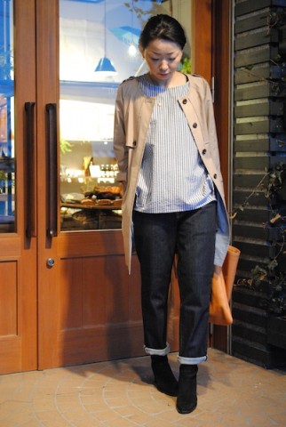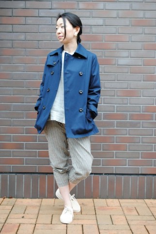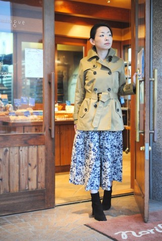 ボトムスに変化を加えたい方におすすめなミディアム丈のトレンチ。