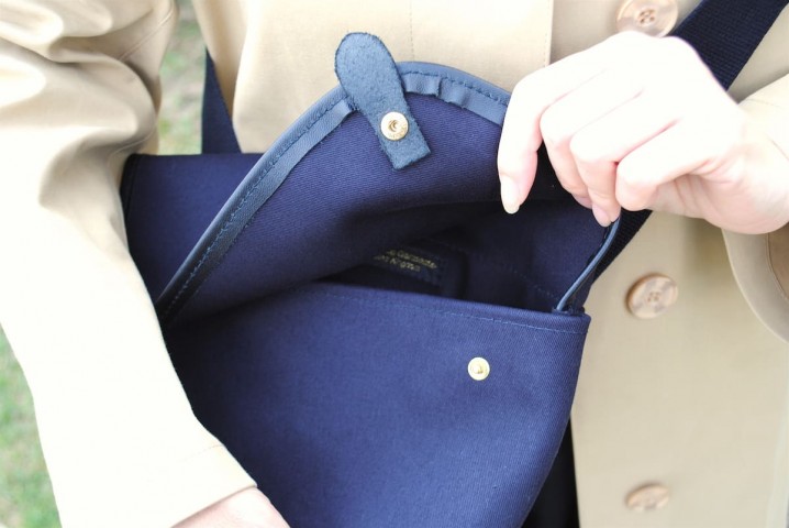 スナップボタンで開閉するシンプルな作りです。