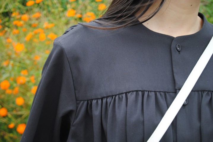 クラシックでありながら、どこかモダンさも感じるようなギャザーディテール。