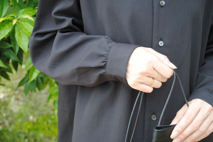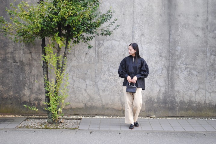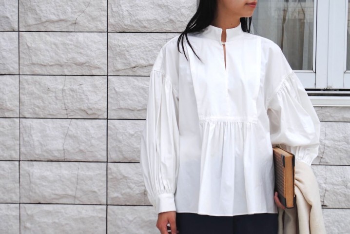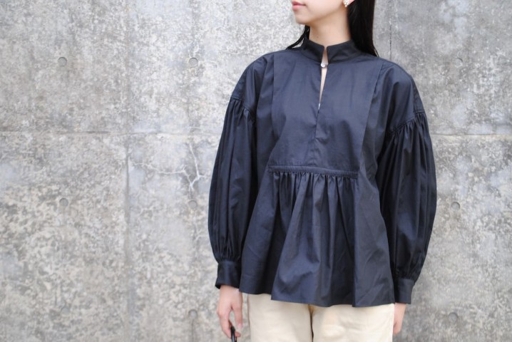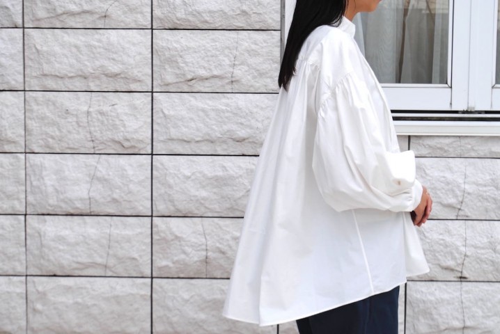 膨らみのあるバルーン袖が目を惹くプルオーバータイプのブザムシャツ。