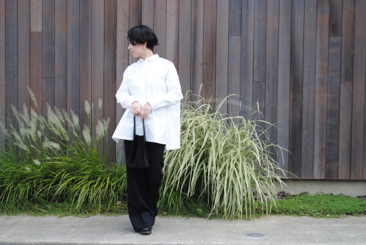 肩の落ちたゆったりシルエット。サイドには脇下までの深いスリットが入っています。