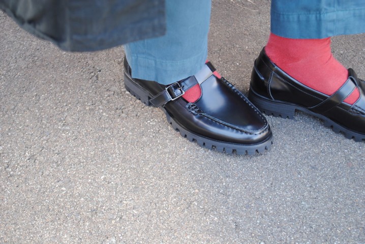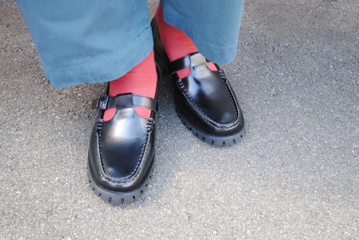 ストラップシューズならではの、ソックスを合わせるスタイルも