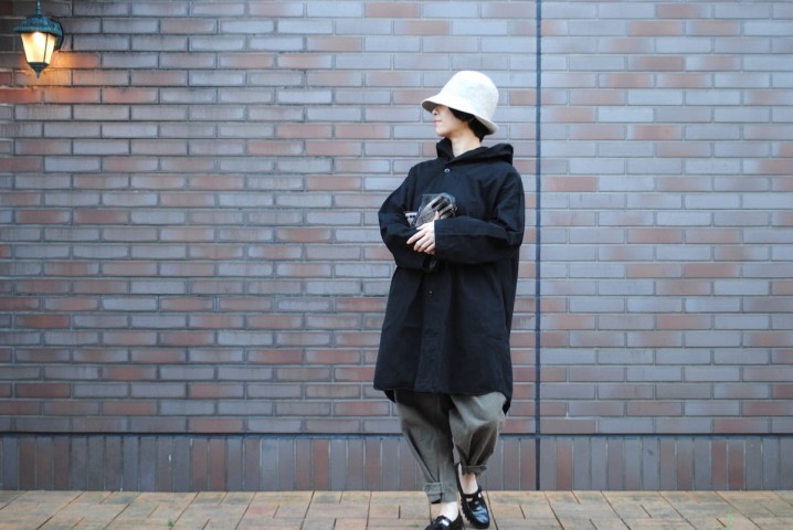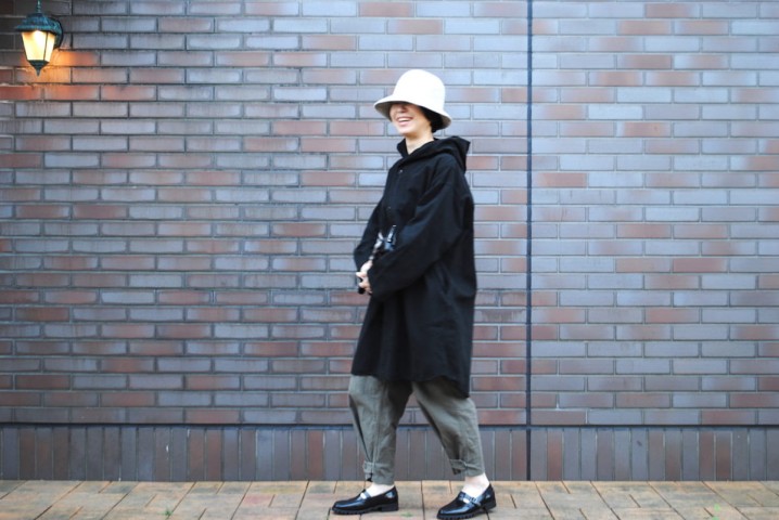 着ているのは、prit の新作フードコート。