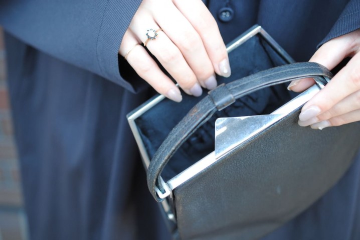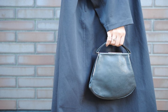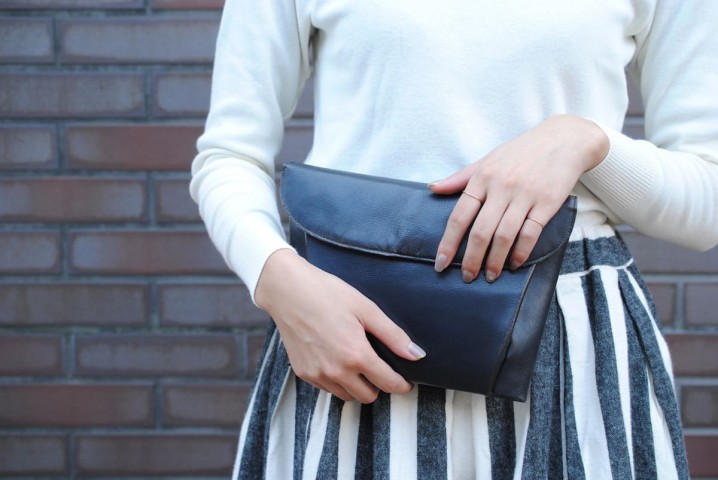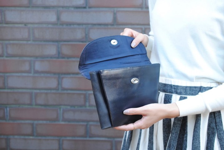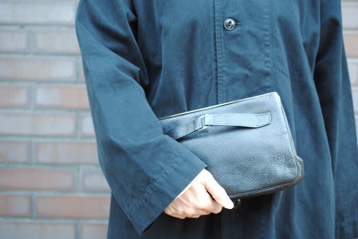 ネイビーのクラッチバッグも、ドイツ製のもの。