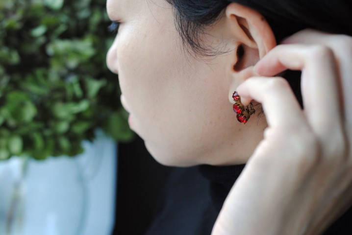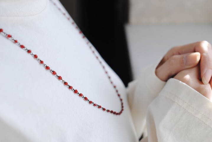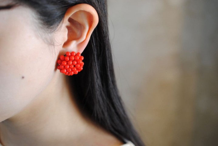 天然石、ビーズ、エナメル。素材も色味もいろいろなアンティークの赤。