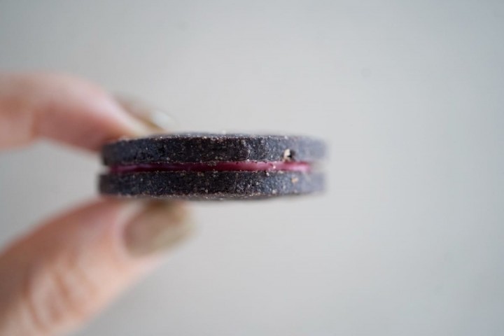 それから、ビターチョコサブレにフランボワーズのチョコレートを合わせたサンド。これ大好き。。