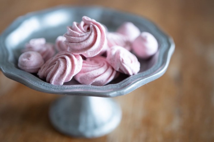 バラを象ったイチゴのメレンゲは、シュワっとした口溶ける不思議な焼き菓子。