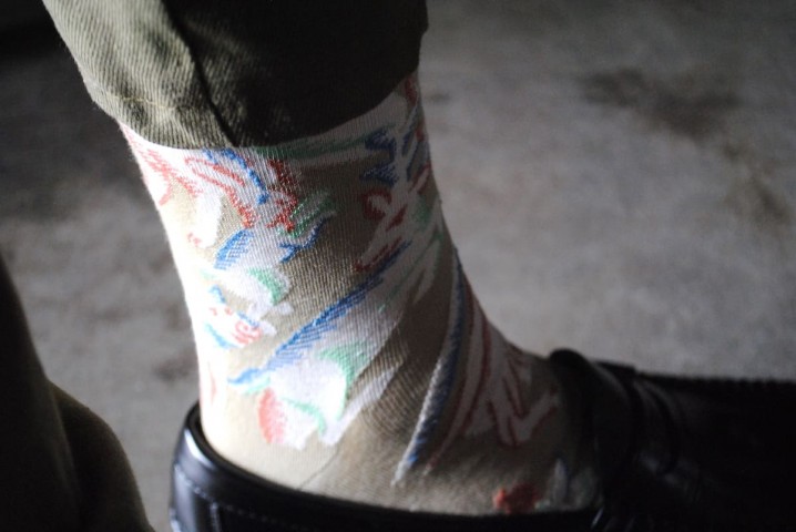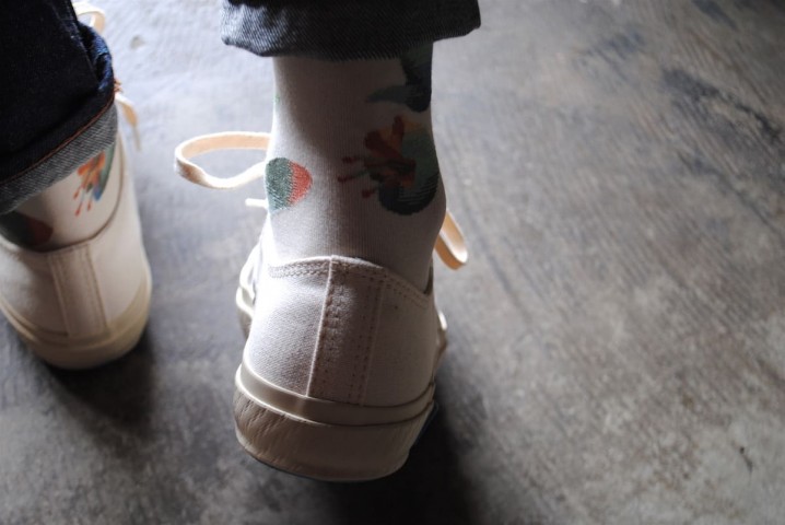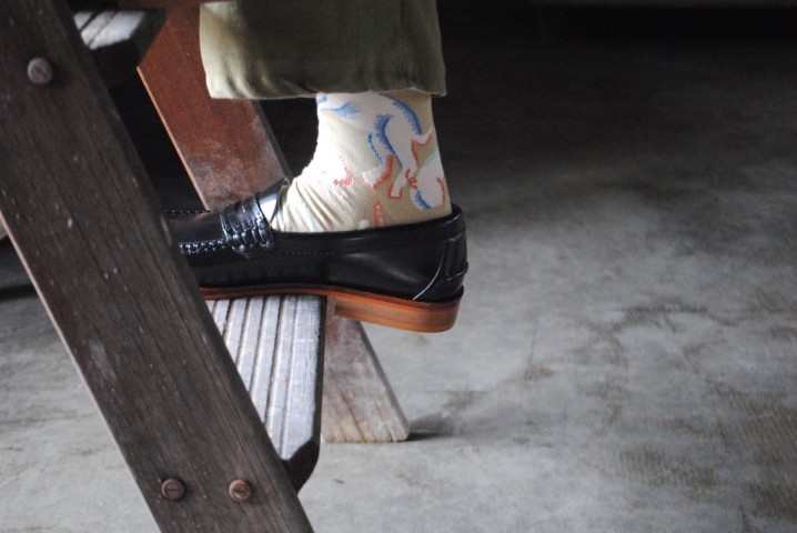 いつものカジュアルスタイルにもひと癖。靴下次第でがらりと雰囲気が変わります。