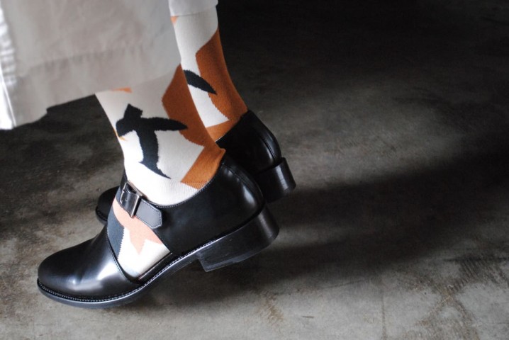 足元は定番のストラップシューズ。靴下合わせには欠かせない一足です。