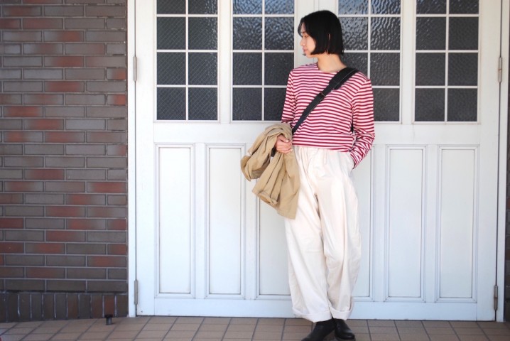 ツヤ感を感じるコットンサテン地が幅広いスタイルに活躍しそう。