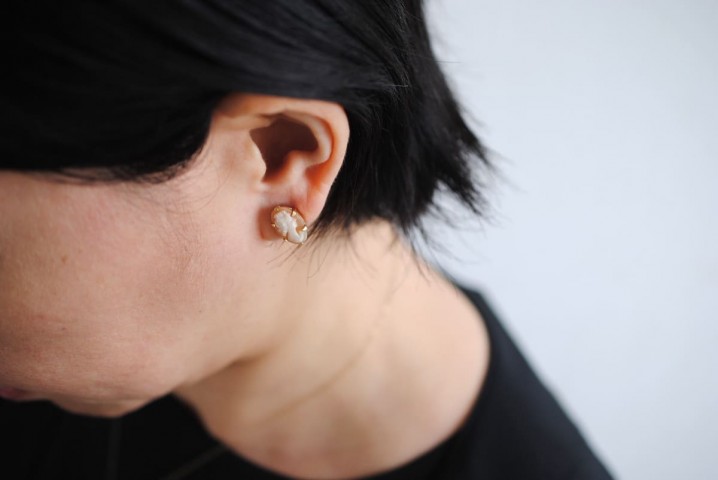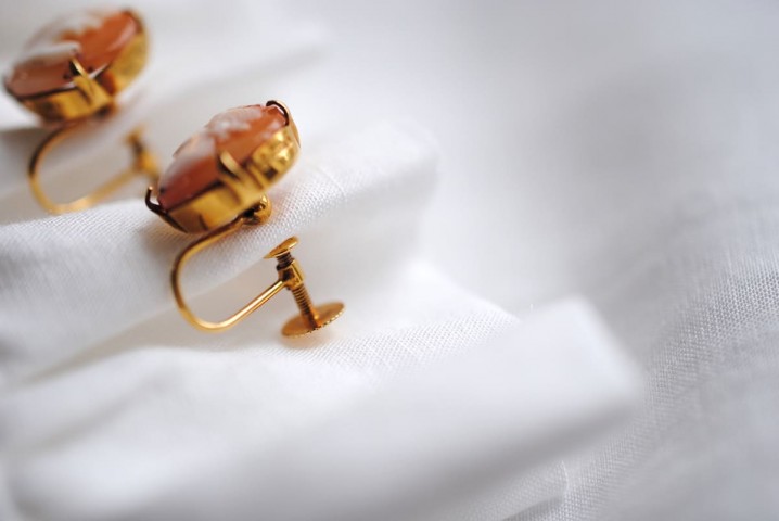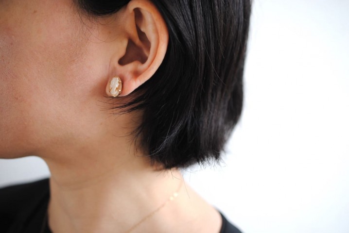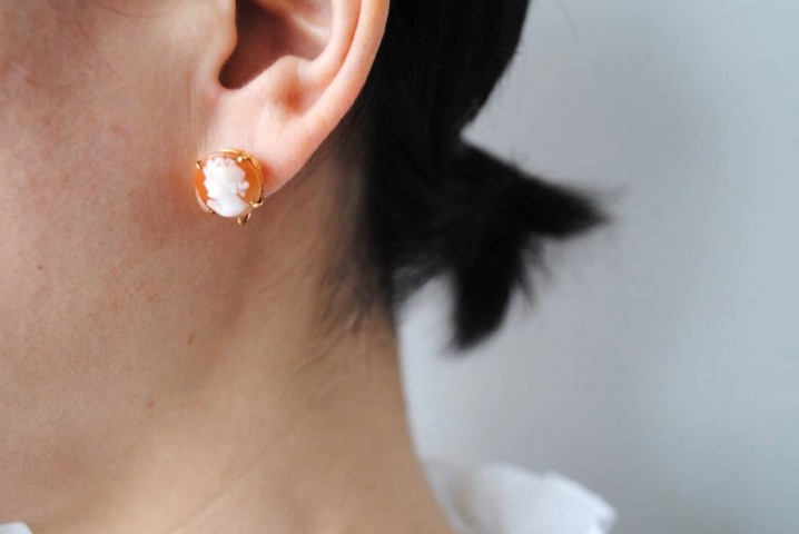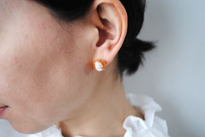 カメオイヤリング(スクリュー) 9K Gold / Shell cameo