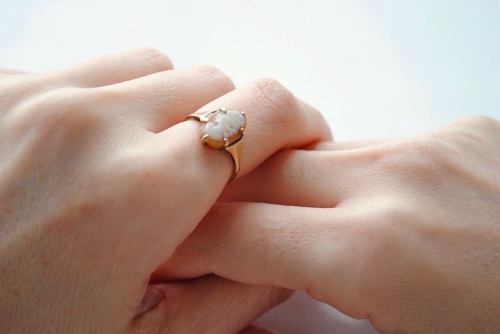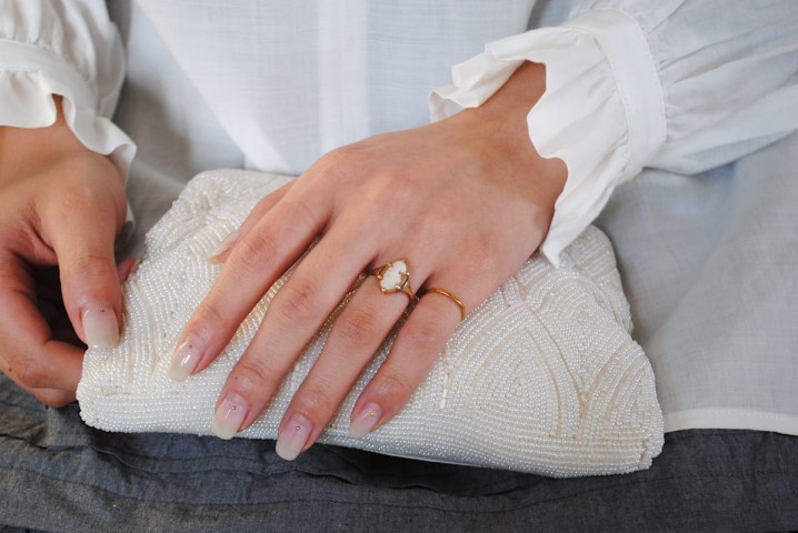 どうせならと、カメオがある手元にこんなビンテージバッグがしっくり。