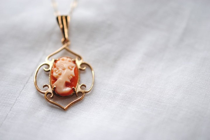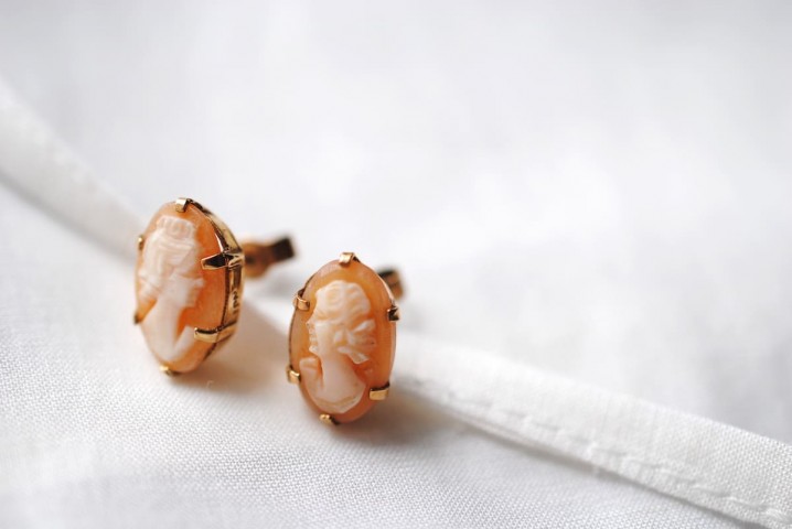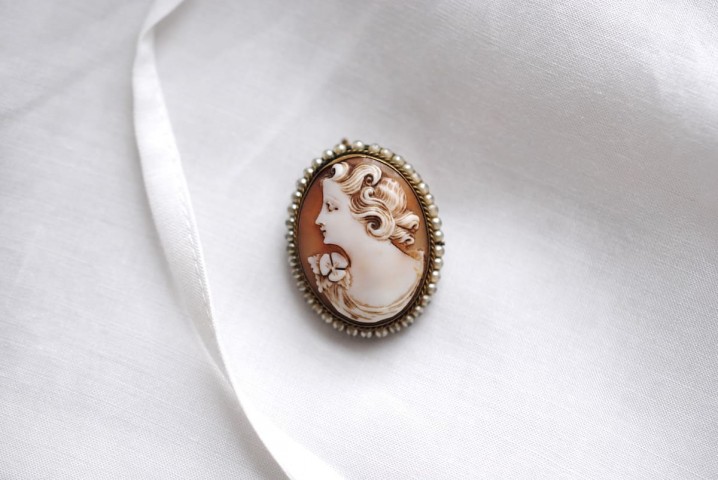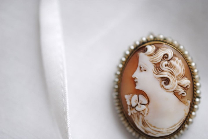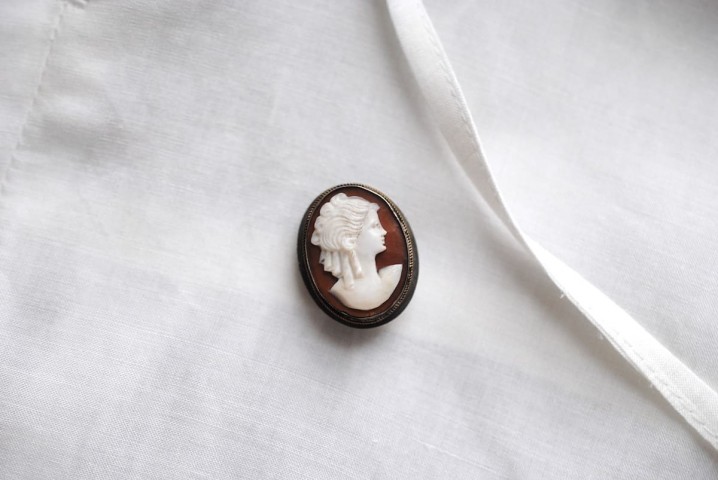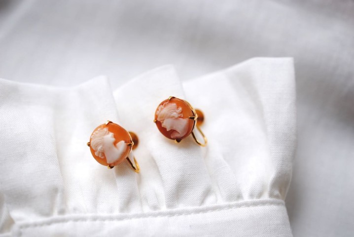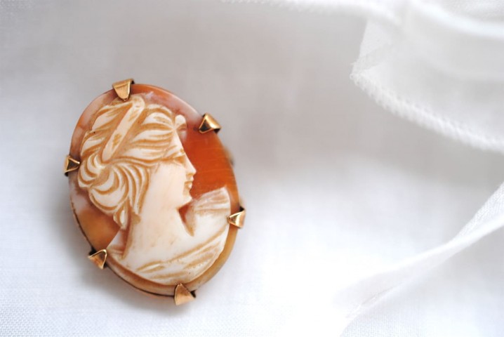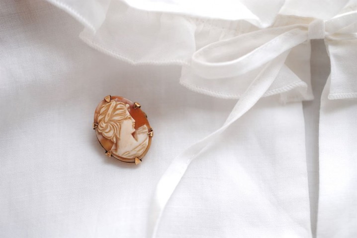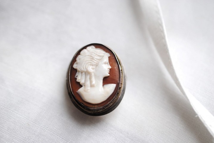 何気にアンティークのカメオの品を眺めながら、今度の入学式で個性的なコサージュ代わりにしようか、、