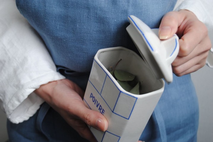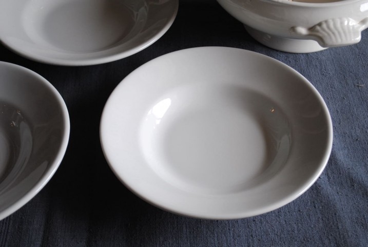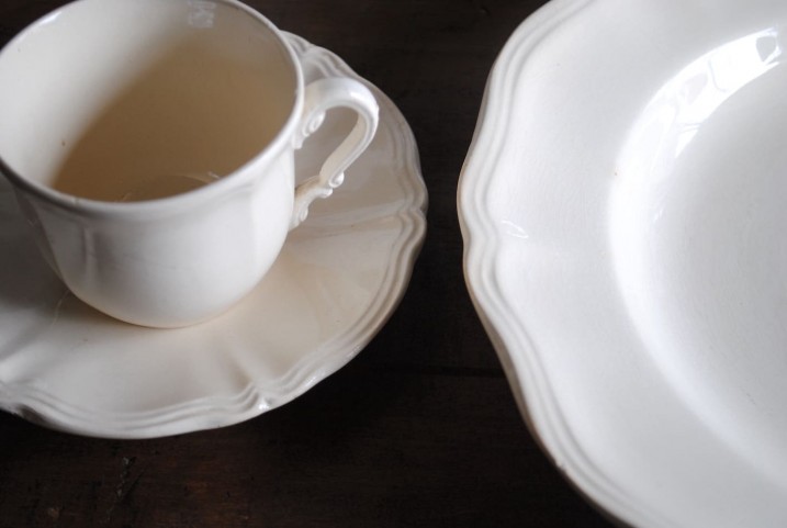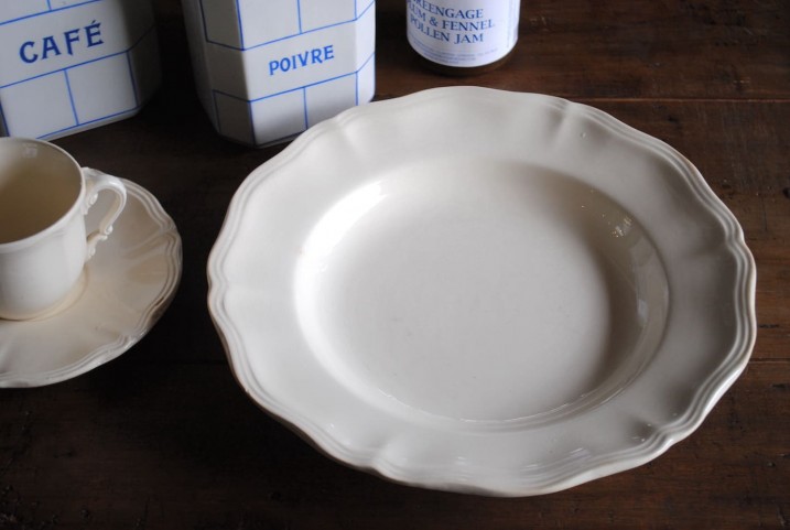 白い陶器にブルーインクで描かれたフランスらしい上品なデザイン。