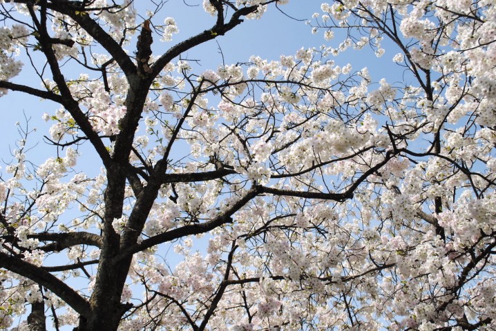ちょうど見頃の九分咲き桜のあるご近所で、撮影合間の少しのお花見を楽しみます。