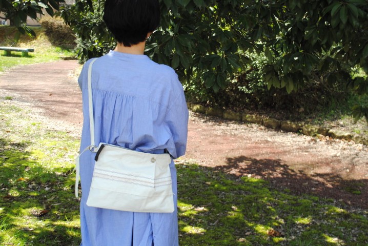 白ワントーンに見えるこのバッグも、薄らとさりげなく入るステッチが良いアクセントになっています。