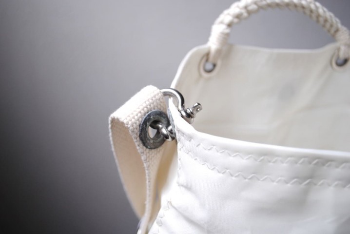母体に使われたセイルクロスだけでなく、ハトメや留め具にも経年変化したビンテージパーツを使用。