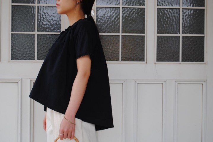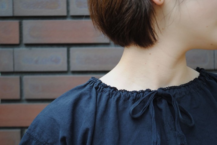 実はもともと長い丈だったものを、短く切ってブラウスにアレンジしているんです。