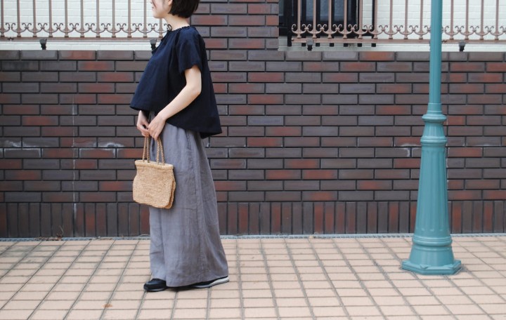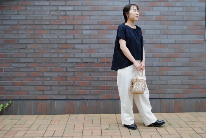 白のパンツやカゴバッグと合わせると夏っぽく着ることができます。