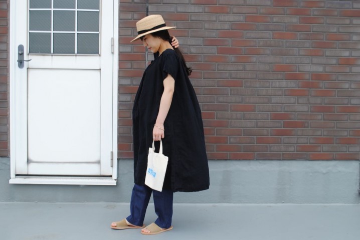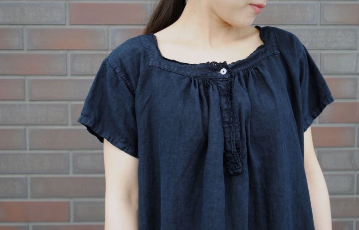 首元はスクエアネックで生地はリネンなので、より涼しく着ていただけます。