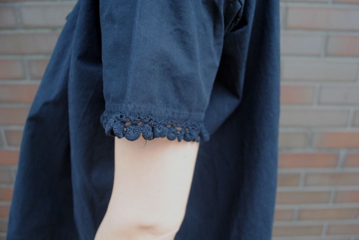 袖と首元にはリネンの刺繍が。お花の刺繍でしょうか。