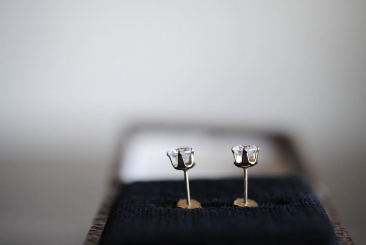 爪留めのクリスタルガラスのスタッズピアス。