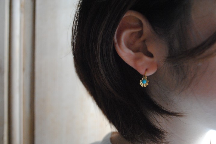 リアルターコイズのような鮮明なターコイズブルーが映える1968 - 69年製のフックピアス。