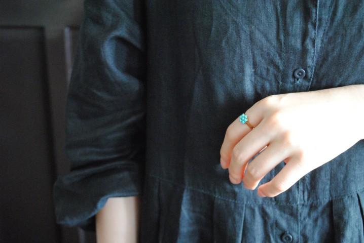 ターコイズ7石が花を象った贅沢なリング。