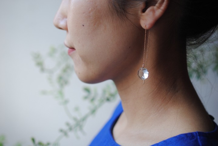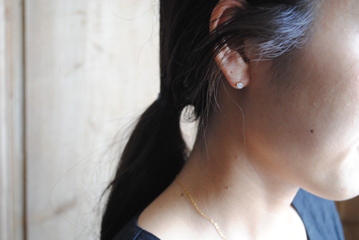 オクタゴンカットの一粒フックピアス。