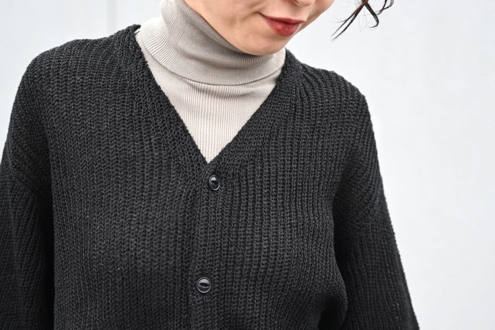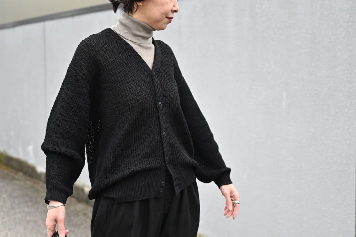 ローゲージが軽やかなカーディガン。
