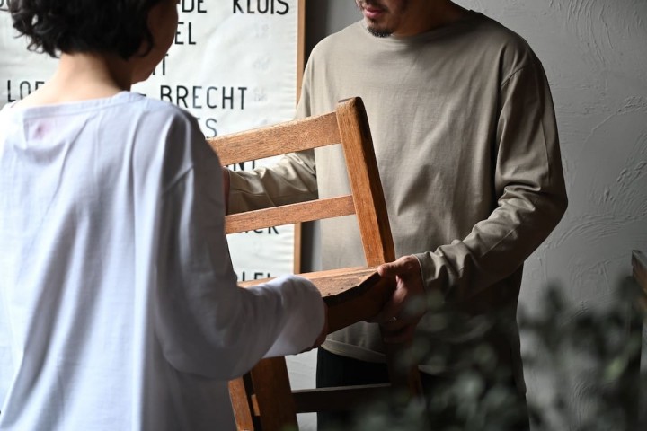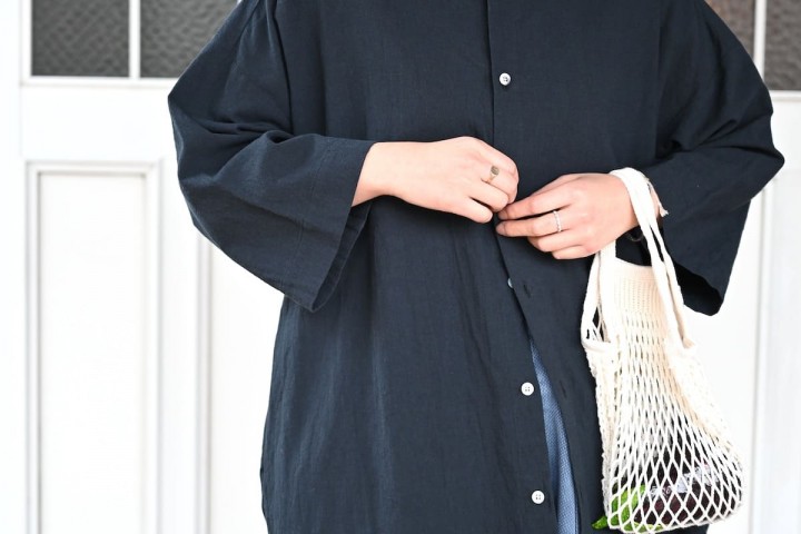 心地よい日は、Tシャツと。夏場は、ノースリーブの上にさらりと羽織って。