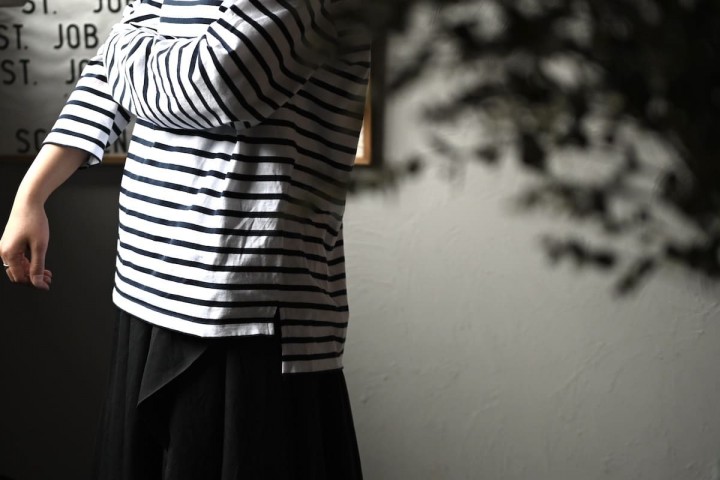 これが何気に、ボートネックの「開きすぎているかな?」のそわそわを抑えてくれるポイントにもなってくれて嬉しい。