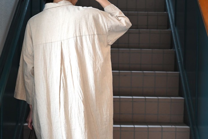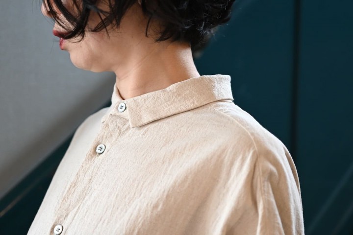 サンドウォッシュ加工された綿麻の生地が軽やかな雰囲気です。