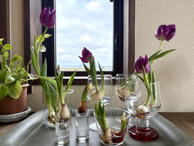 今回はチューリップやクロッカス、ムスカリも挑戦して、今はチューリップが満開です。