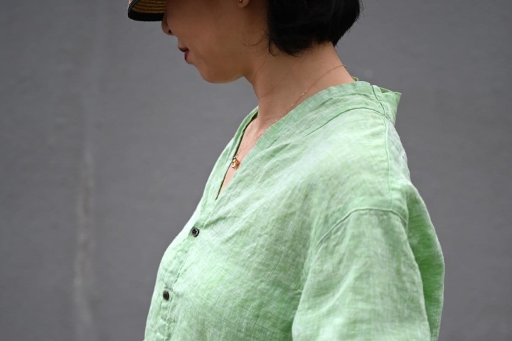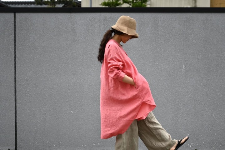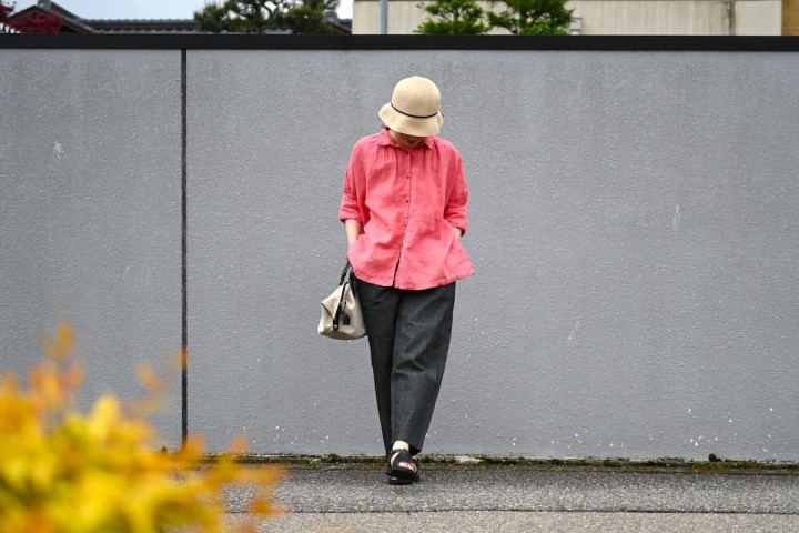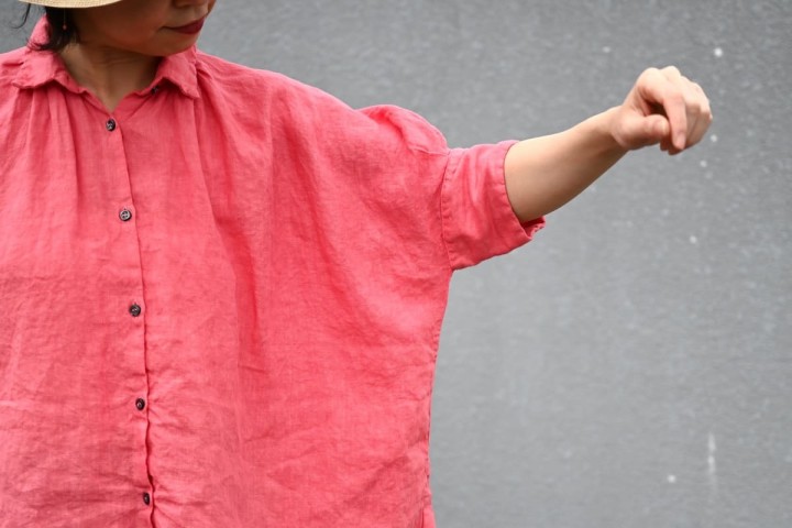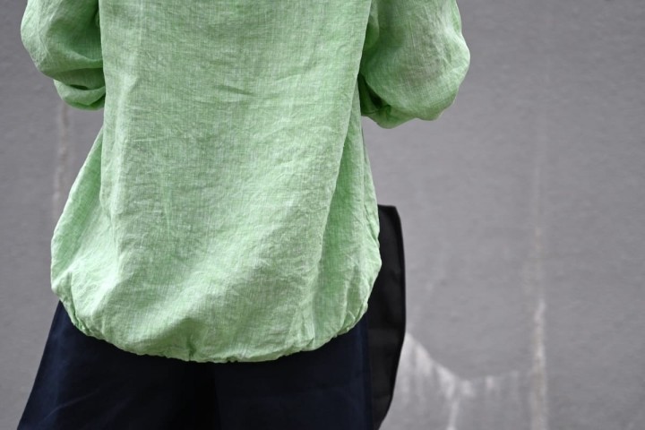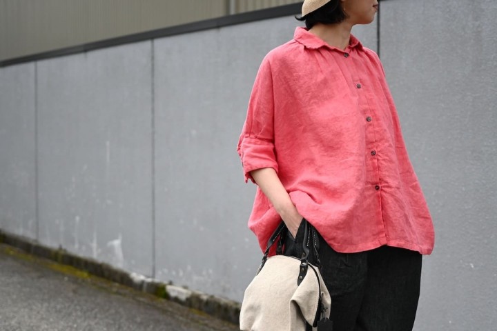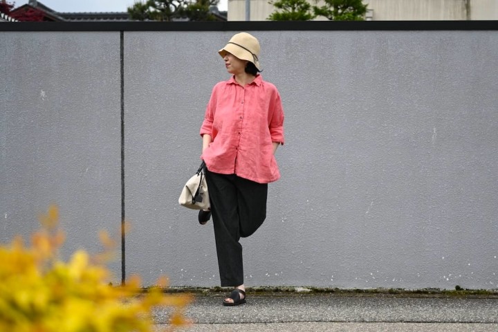 リネンは汗をかいてもベタベタせずにすぐ乾き、洗っても速乾、翌日には着れる扱いやすさが大変にありがたい素材ですね。