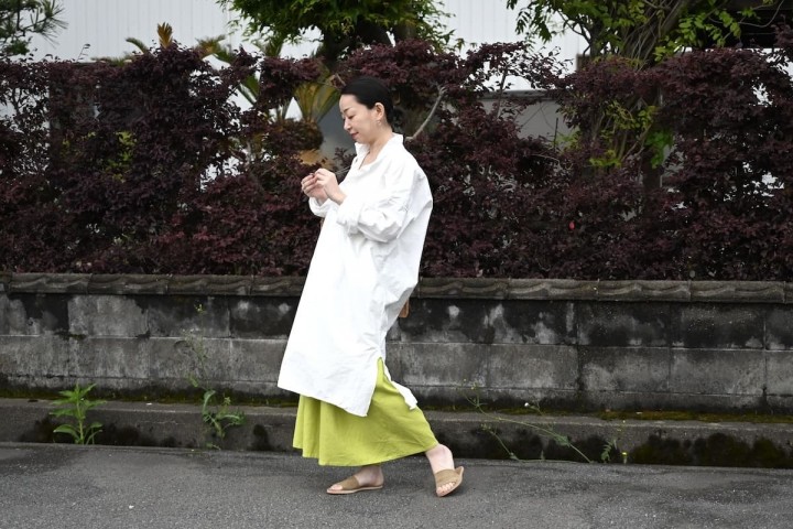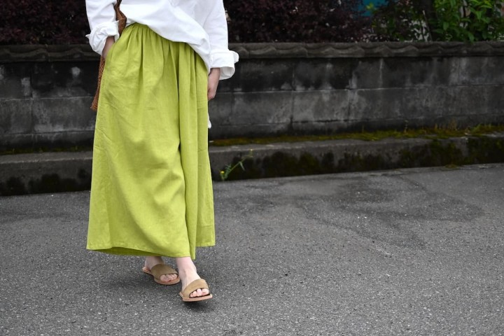 ふんわりと風をはらむ柔らかなリネンに、自然と足取りも軽くなりそう。