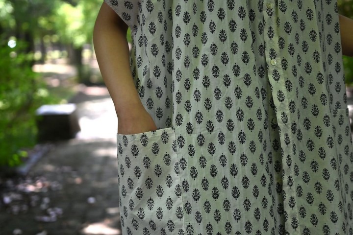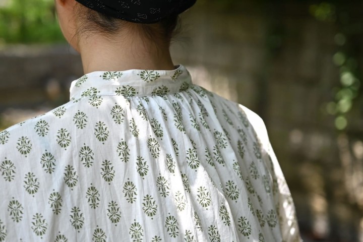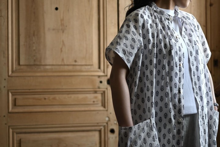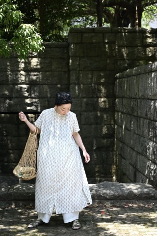 インドの伝統技法であるブロックプリントのようなデザインが夏らしい。