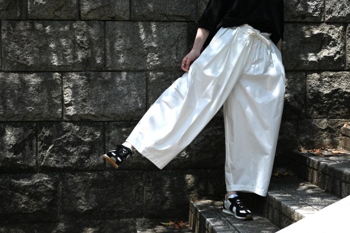 パンツは、ハリのあるコットンのコクーンシルエット。