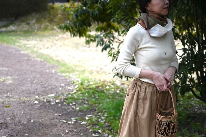 ふんわりと空気を含んだように柔らかいコットンスカーフは、まだ少し肌寒いときにはほんのりと暖かく、