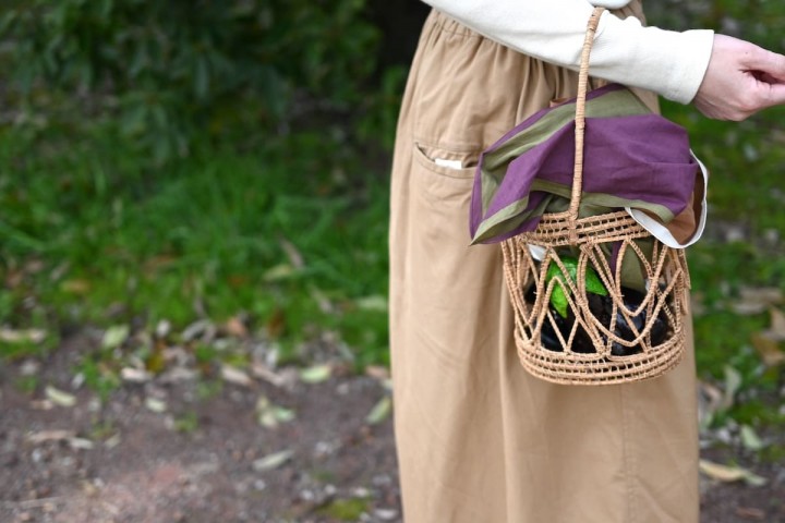 時にはカゴバッグの目隠しとして。