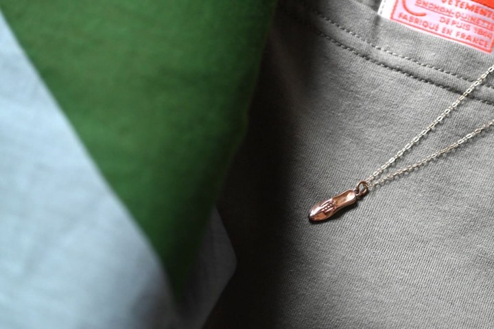 今日はもう一つ、シューズモチーフのオールドゴールドネックレスをさりげなくプラス。