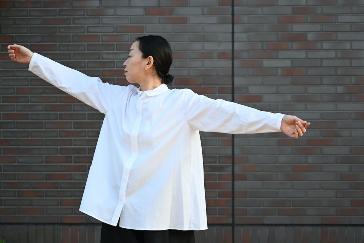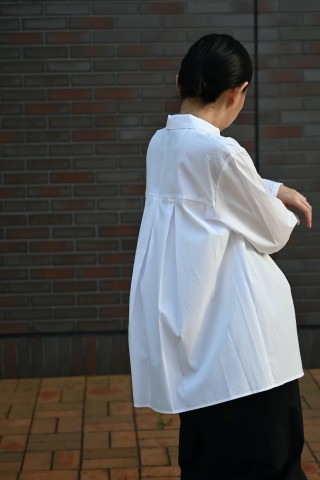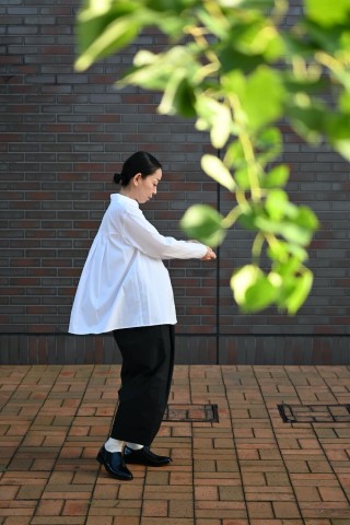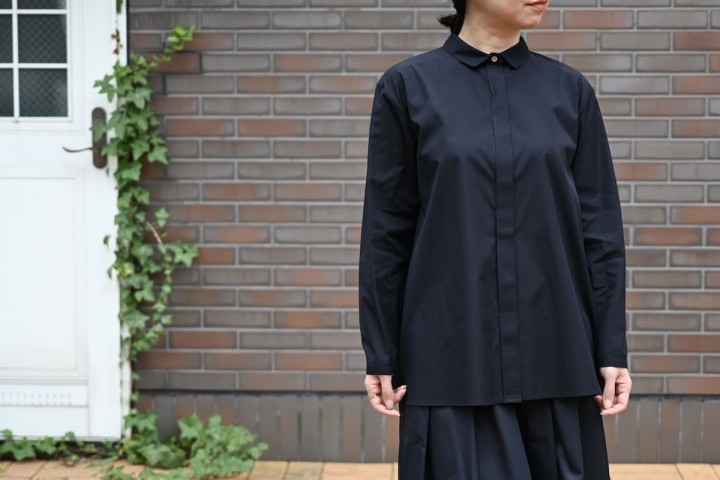 このブラウスには、削ぎ落とした先に残る静かな存在感があります。