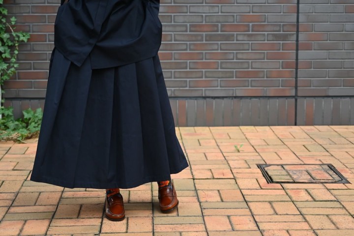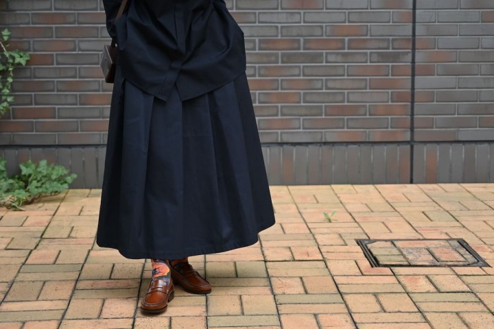 合わせたスカートは、裾にかけてゆるやかに広がるAラインシルエット。