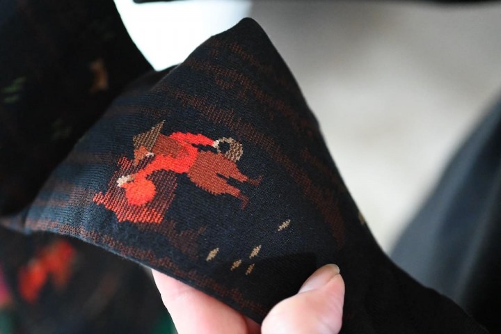 派手な装飾はなく、襟元や袖の切り替え、背面のプリーツに丁寧な作り込みを感じます。