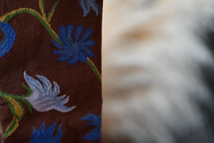 クラシックな装いに、柄や色がほんのわずかに差し込まれる。