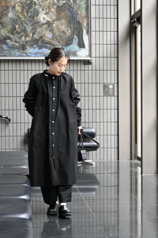 さらに、贅沢な生地感が魅力の「FACTORY(ファクトリー)」のコットンワンピースに羽織って。